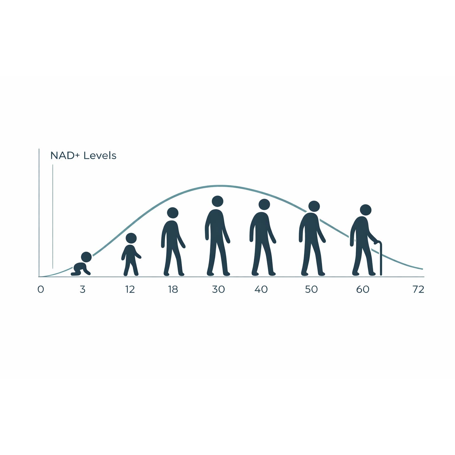 NAD⁺ is a coenzyme found in all cells. It is essential for energy metabolism, DNA repair, cell renewal and activation of sirtuins - proteins linked to longevity. As we age, NAD⁺ levels naturally decline, affecting energy and health.